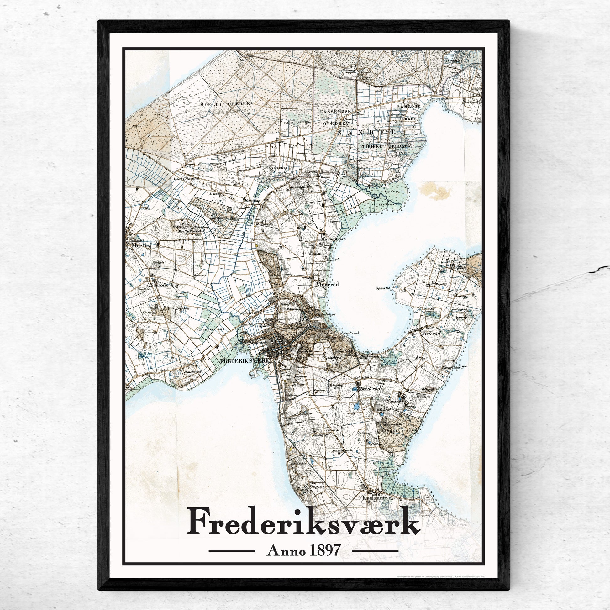 Tag et kig tilbage i tiden med denne smukke plakat, der gengiver Frederiksværk, som byen så ud i 1897. Den enkle, klassiske stil passer elegant ind i ethvert hjem, mens kortets mange detaljer giver rig mulighed for at dykke ned i byens historie.