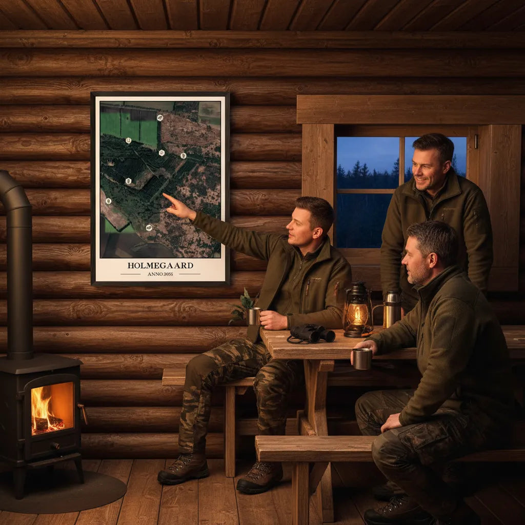 Få et unikt og detaljeret kort over dine jorder, som ikke bare er praktisk, men også smukt nok til at hænge i stuen eller jagtstuen. Med vores "Design Selv"-værktøj kan du zoome ind på præcis din matrikel og markere de steder, der betyder noget for dig.